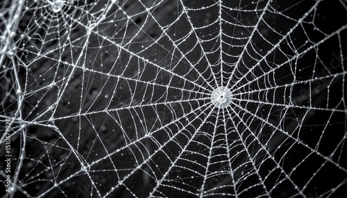 © CRISPIFLY, Obraz premium creepy white spider web on black background position at the bottom with clear copy space at the top.