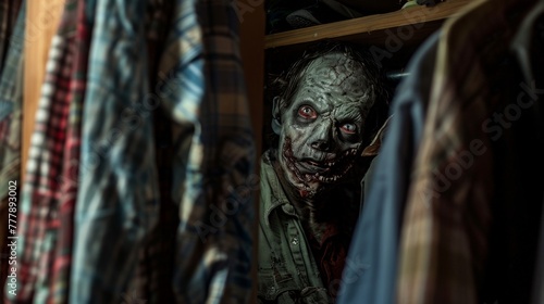 © POLO VECTORS, Obraz premium Creepy Zombie Head Found in Closet