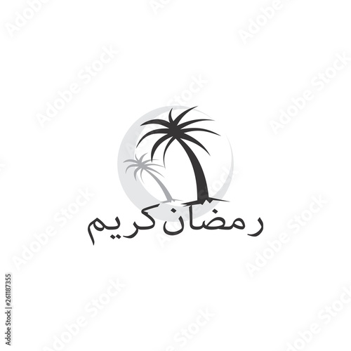 Naklejka premium Crescent and dates tree with ramadan kareem text in arabic calligraphy logo...