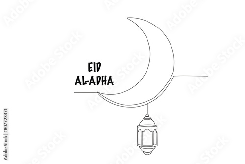 Naklejka premium Crescent moon and lantern. Eid al adha concept one-line drawing