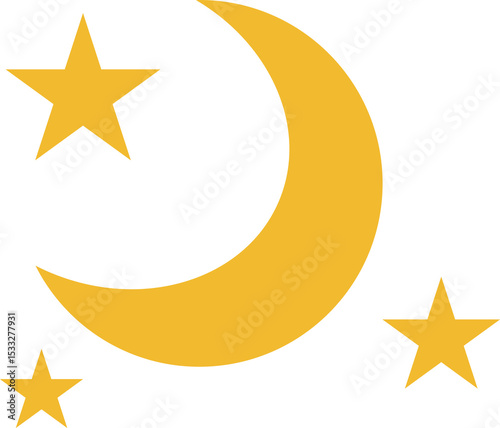 Fototapeta premium Crescent moon and stars are floating on transparent background in flat vector style, glowing yellow