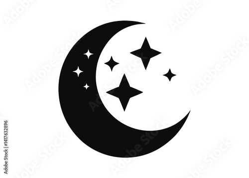 © Emon, Naklejka premium Crescent Moon and Stars Minimal Vector