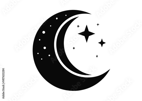 Obraz premium Crescent Moon and Stars Minimal Vector
