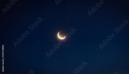 Fototapeta premium Crescent moon glowing in night sky with scattered stars, celestial beauty