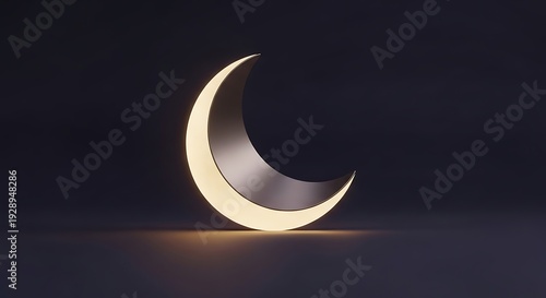 © Tugas, Obraz premium Crescent moon glowing softly in the dark night sky serene landscape view