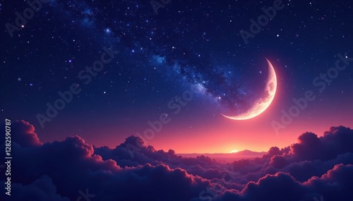 Fototapeta premium Crescent moon hangs in a vast, star-studded sky , cosmos, night