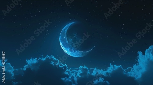 Fototapeta premium Crescent Moon in a Starry Night Sky