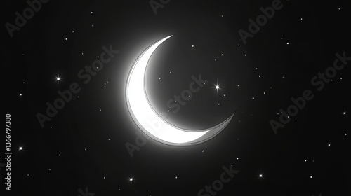 Fototapeta premium Crescent Moon in a Starry Night Sky
