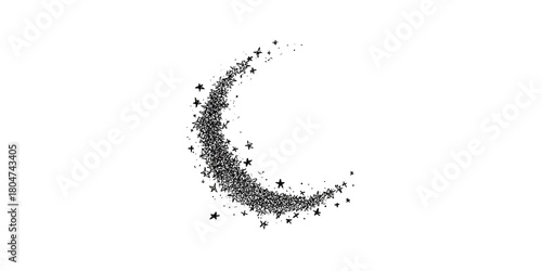 © Dinali, Fototapeta premium Crescent moon made of sparkling glitter dust on black background Concept of night sky, astrology, and cosmic wonder