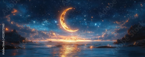 Fototapeta premium Crescent Moon over a Serene Seascape