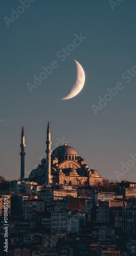 Naklejka premium Crescent moon over Istanbul mosque (3)