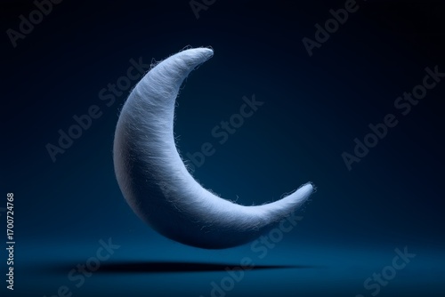 Obraz premium Crescent moon silhouette carved from cotton sheet glowing softly against midnight blue floating background