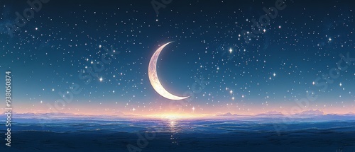 Fototapeta premium Crescent Moon Starry Night Islam Religion Spiritual Symbol
