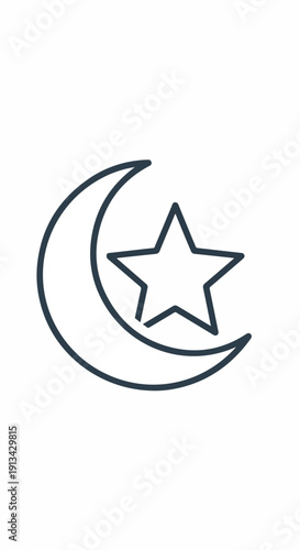 Fototapeta premium Crescent Moon with Star Icon Symbol.