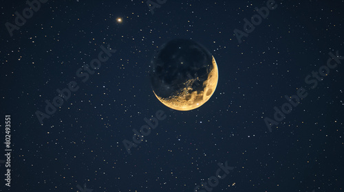 Fototapeta premium Crescent moon with visible against a star-filled night sky