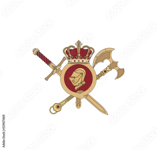 Naklejka premium CREST DECORATIVE HERALDIC ELEMENT, GRAPHIC ICON TUSCANY LOGO ROYAL, MEDIEVAL EMBLEM