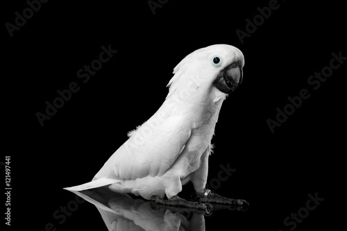 © seregraff, Fototapeta premium Crested Cockatoo White alba, Umbrella, Funny Looking in Camera, Indonesia, isolated on Black Background