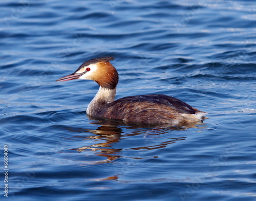 Fototapeta premium Crested grebe (podiceps cristatus) duck on water