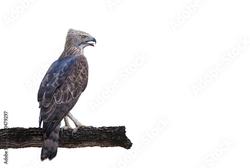 Fototapeta premium Crested Hawk Eagle on branch on white background.