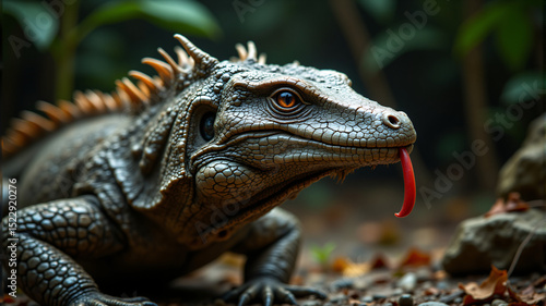 © Khwankhae, Obraz premium Crested Iguana Close-Up