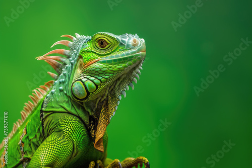 Obraz premium Crested Iguana on green background copy space