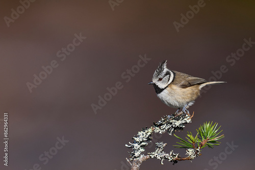 © JeremyRichards, Naklejka premium Crested Tit (Lophophanes cristatus) perched on a branch in the highlands of Scotland