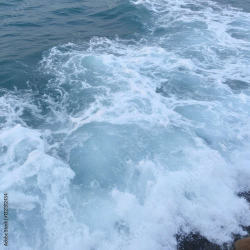 Fototapeta premium Cresting ocean waves, tranquil blue water with frothy white caps, perfect...