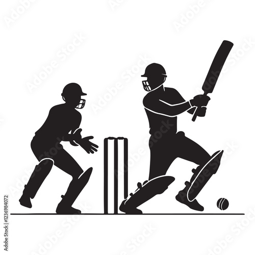 Obraz premium Cricket Match Action Silhouette Vector Illustration