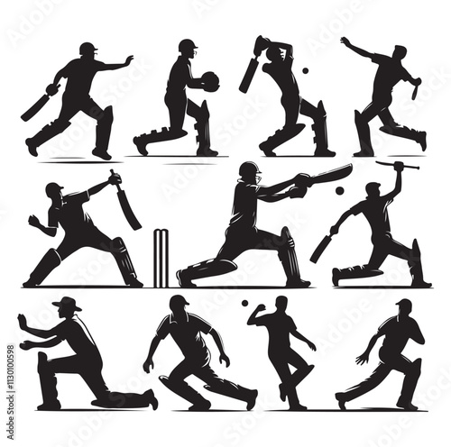 © Joynab, Obraz premium Cricket player set Silhouette vector illustration