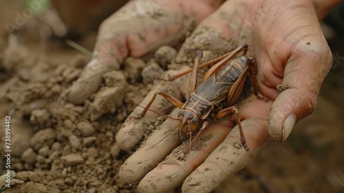 © Ulee, Obraz premium Crickets, flying insects in Thailand Lives in the basement with big hands to dig the dirt.