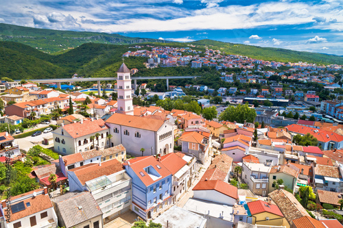 Obraz premium Crikvenica. Town on Adriatic sea church and landscape aerial view