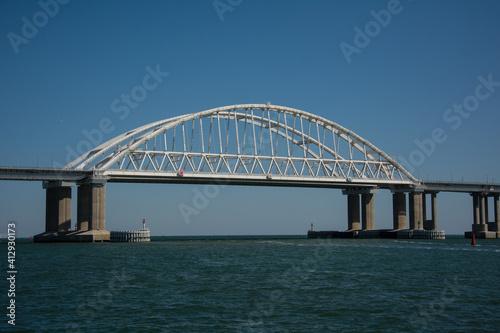 © SUN_art, Naklejka premium Crimean bridge across the Kerch Strait on a clear day