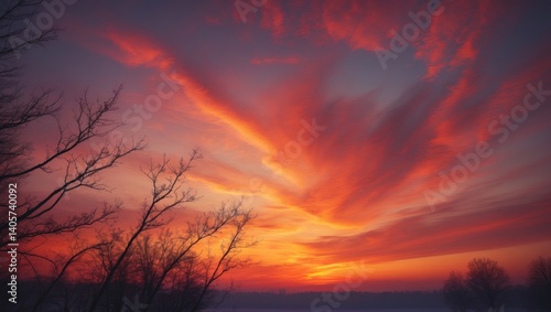 © NeuralNiche, Obraz premium Crimson and orange hues in the evening sky