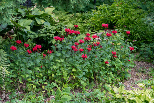 © Barbara, Fototapeta premium Crimson Beebalm growing in the garden in summer in Wisconsin