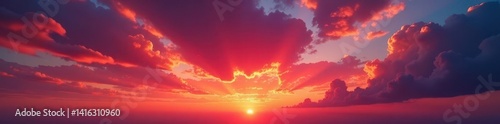 Fototapeta premium Crimson clouds ignite the western sky, breathtaking sunset spectacle, art,...