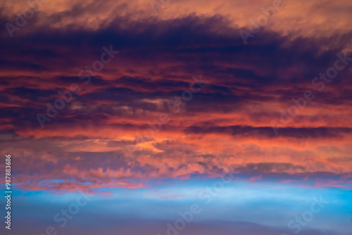 Fototapeta premium Crimson clouds in blue sky at sunset
