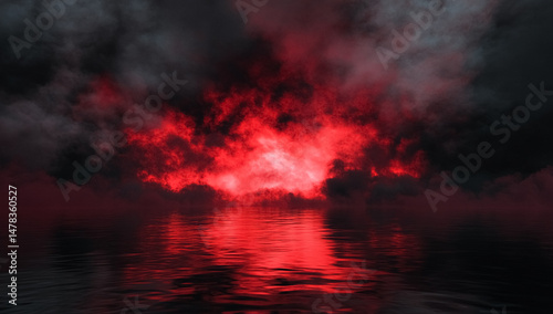 © Hassan Gallary, Naklejka premium "Crimson Mist Over the River"