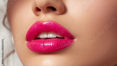© Den Boro Day, Fototapeta premium Crimson Shine. A Study in Color and Texture near the Mouth and Nasal area, closeup Shot.