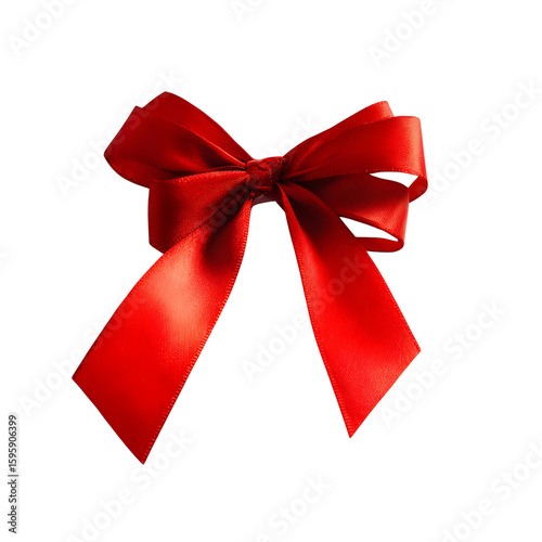 Fototapeta premium Crimson silk bow, a festive ornamentation against darkness, symbolising elegance