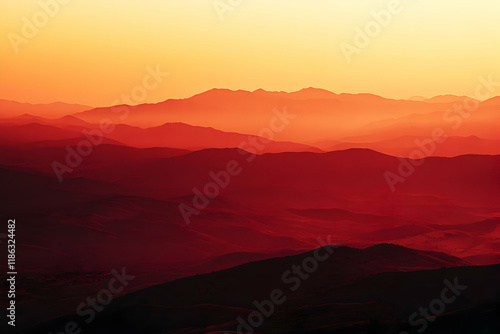 © Arief, Fototapeta premium Crimson Sunset Mountains Illustration