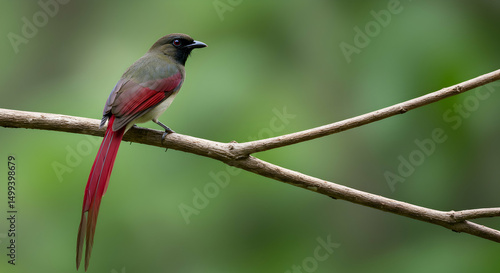 © sarinya, Fototapeta premium Crimson-tailed minla, Bird, Minla, Crimson-tailed Minla perched on a branch