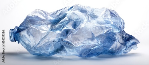 © Patongari, Fototapeta premium Crinkled, blue plastic water bottle