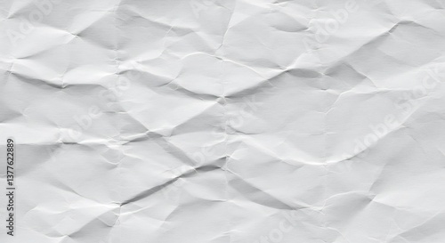 © NguyenHaiPhuong, Fototapeta premium Crinkled White Paper Texture Soft Light. AI Generated