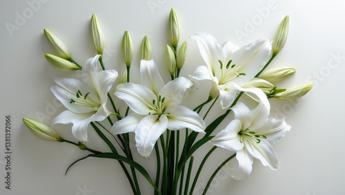 © CryptoCanvas, Fototapeta premium Crinum moorei blossoms set against a white backdrop.