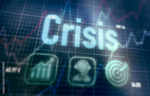 Obraz premium Crisis concept on a blue dot matrix computer display.