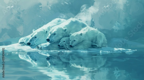 Obraz premium Crisis in the Arctic: Endangered Polar Bear Family Stranded on Melting Ice, Conservation and Climate Change Concept
