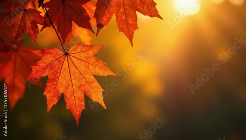 Fototapeta premium Crisp autumn air, backlit maple leaves glowing golden , image, woods