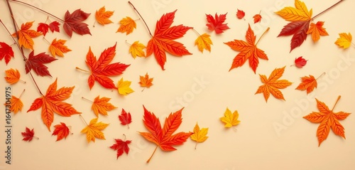 © chanasorn, Obraz premium Crisp autumn leaves scattered artfully on a beige backdrop, november, design