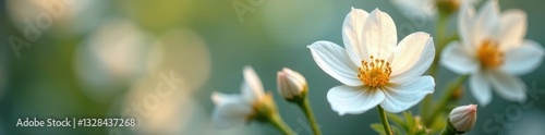 © Birdkab, Fototapeta premium Crisp white blooms, subtle shadows, refined floral composition, simple, nature