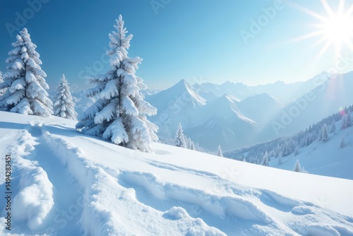 Fototapeta premium Crisp white snowdrift against bright backdrop , outdoors, texture, white